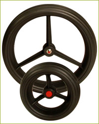 Standardbereifung für den ALBATROS ist das 3-Speichenrad, mit breiter Luftkammerbereifung und höchstem Fahrkomfort. Die Nachteile der sonst üblichen Luftbereifung wie Druckverlust und "Plattfüße" werden hiermit vollkommen vermieden.