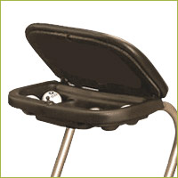 Unter dem Sitzdeckel befindet sich ein praktisches Ablagefach für Bälle, Tees und Dies und Das.